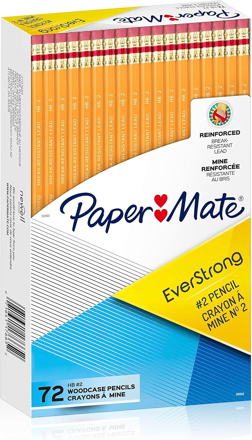 Paper Mate EverStrong #2 Pencils, Reinforced, Break-Resistant Lead When Writing, 72-Count